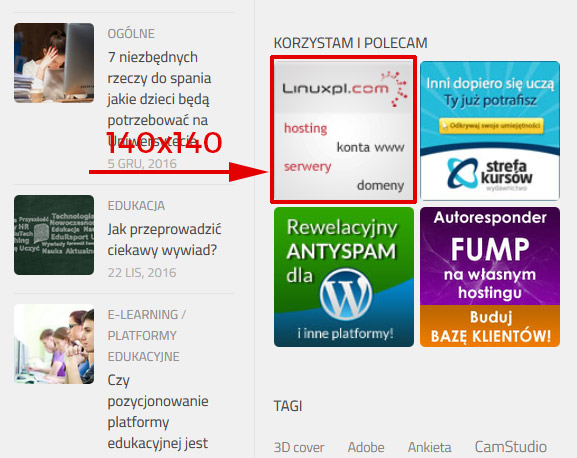 - w obszarze artykułu wyróżnionego na stronie głównej (czas emisji: 7 dni, cena: 80zł) – po czasie emisji artykuł zostaje na blogu